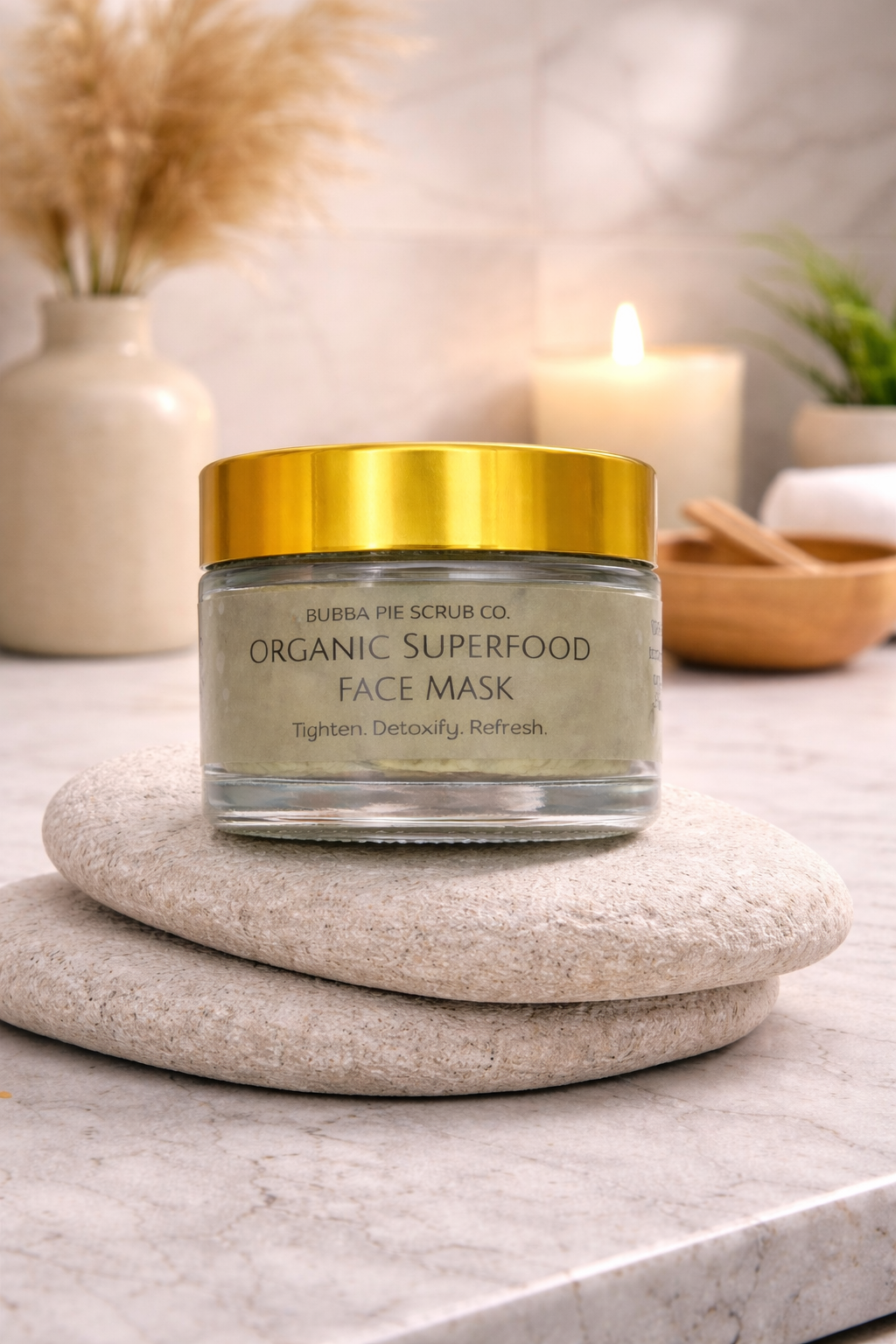 Our products are handcrafted with love, made with natural and organic ingredients that smell divine. We have a product for any skin type. Treat yourself to a little pampering session and let your skin glow with Bubba Pie Scrub Co. - your skin will thank you!